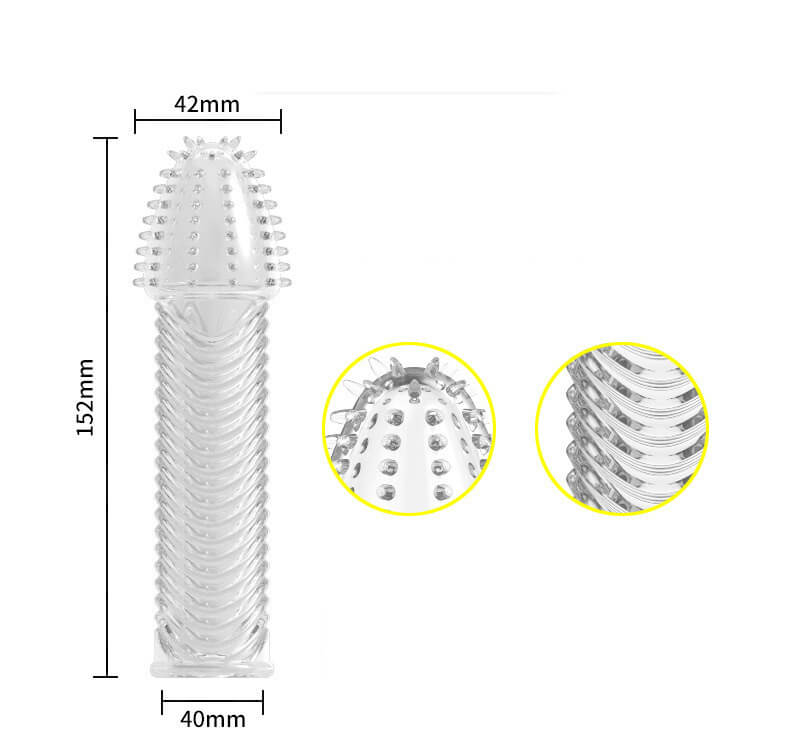 - Tăng Kích Thước Và Tăng Khoái Cảm: Với chiều dài 105mm và đường kính từ 30 – 40mm, bao cao su này giúp tăng chiều dài dương vật đến 4.5cm. Thiết kế đầu có các sợi gai mềm và thân có những đường gân giúp tăng khoái cảm, mang lại cảm giác mãnh liệt và đầy hứng khởi cho cả hai bạn.
