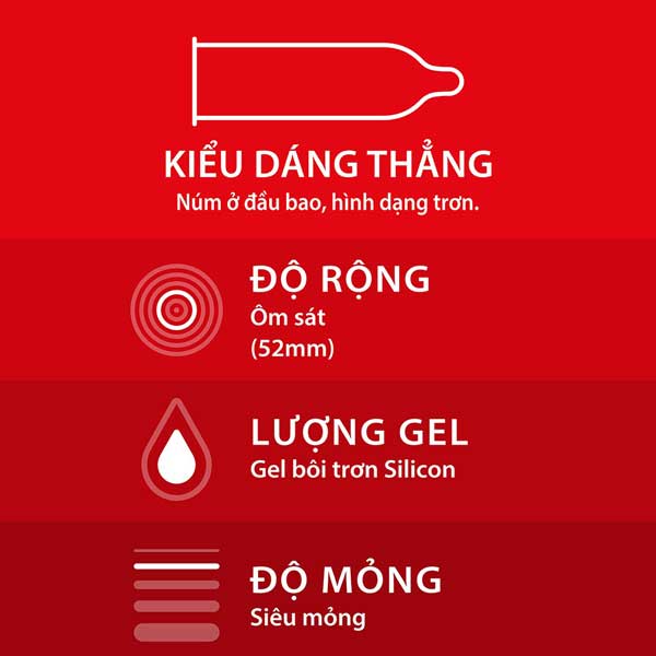 Cực mỏng, cảm giác tự nhiên: Gần như không cảm nhận lớp bao, tăng khoái cảm.