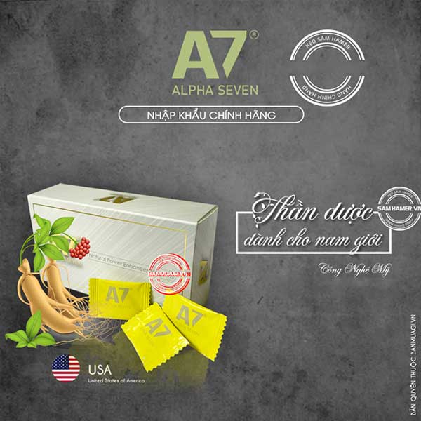 Điểm mạnh của A7 nằm ở bảng thành phần tự nhiên 100%. Sâm Maca giúp tăng sức bền, cải thiện miễn dịch và giảm stress. Tinh chất mầm đậu nành mang đến nguồn protein dồi dào giúp cơ bắp thêm khỏe mạnh. Chanh vàng hỗ trợ ổn định huyết áp, tăng sự tỉnh táo và cải thiện chức năng thần kinh. Tuyết lê là dược liệu quý có tác dụng bổ thận, trị đau lưng và giúp cơ thể phục hồi nhanh hơn. Các chất glucose và protein chuyển hóa giúp duy trì năng lượng, giảm tình trạng mệt mỏi kéo dài.